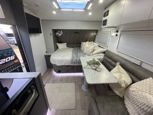 Take this caravan anywhere your heart desires with its Arizon XT240 system! Featuring two 120AH Lithium batteries, four 195W solar panels, DC/DC charger, and 2000W Inverter.