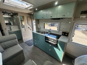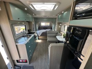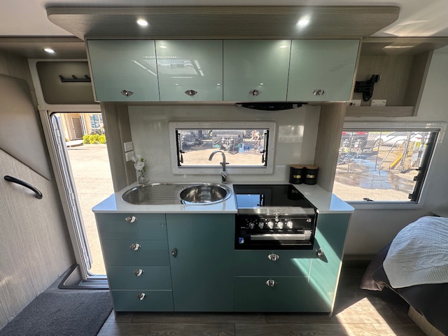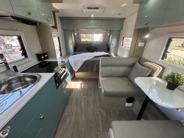 Inside, the Conifer combines efficient use of space with modern styling, offering a warm and practical interior perfect for couples or solo adventurers. Contemporary furnishings, clever storage, quality appliances, and thoughtfully arranged living zones create a comfortable home-away-from-home for both weekend escapes and extended touring.