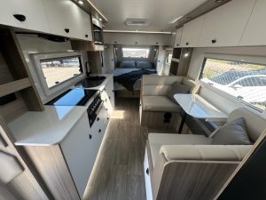 Built with robust engineering and off-road capable features, the Boab handles Australia’s diverse terrains with confidence, ensuring smooth towing and reliable performance wherever your journey takes you. Inside, modern furnishings, quality appliances, and efficient storage solutions make life on the road both convenient and comfortable, while thoughtfully designed living spaces create a sense of openness despite the compact size.
