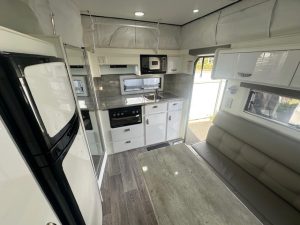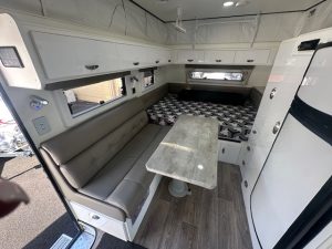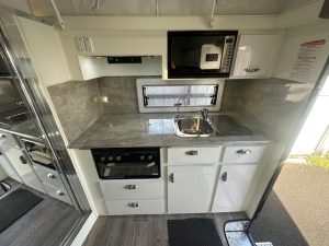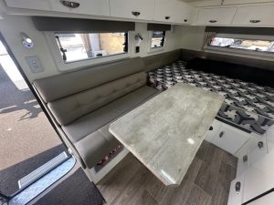 Inside, you’ll find a clean, well-maintained interior with a thoughtful and functional layout. The dinette offers a comfortable dining space, while the kitchenette features a sink and stove. Stove have never been used. Storage is generous throughout the van, and the cabinetry and seating remain in excellent condition. All appliances are in full working order, and the van has been cared for with attention to detail.