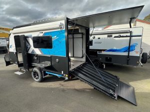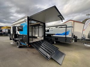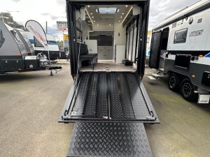 The drop-down rear access ramp doubles as a sundeck area, perfect for relaxing after a ride.