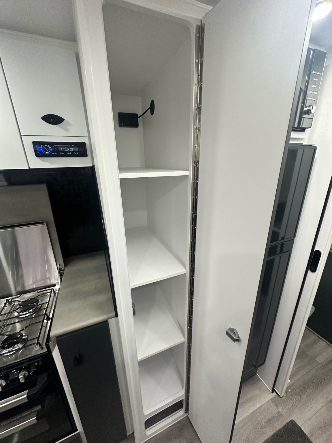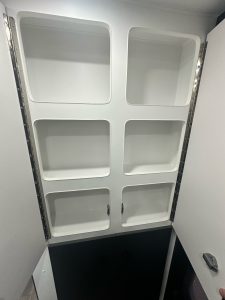 Entering into this rear door layout of the Chateau to the right your greeted with a very convenient full height pantry cupboard making it very accessible for any outdoor entertaining. Keeping your spices and condiments means easy of accessing when the BBQ is in full flight.