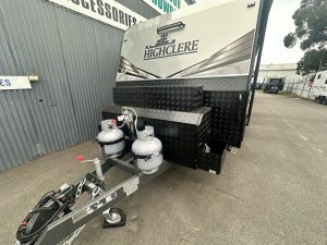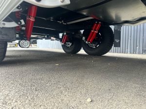 Externally this caravan is sitting on a 6” chassis and 2” riser, with an extended A-frame and DO35 coupling.
