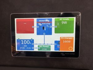 The full “OFF GRID” multi plus system by Victron, has been upgraded to 24V to supply a massive amount of power through the 5000W inverter. This system will easily run the air conditioner at the same time as boiling the kettle and cooking on the induction cooktop.