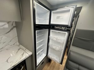As you look down the van you have a large L-shape lounge with fully adjustable table leg, giving you the ability to convert to an additional bedding space if required. Opposite you have a well-equipped kitchen with a stylish Granite sink, full oven griller and cooktop. All of this is recessed under matching bench top to create more bench space. Completing the kitchen is a large 272L compressor fridge that will easily hold enough food for the family. This fridge is dual zone to keep the freezer colder and the beers on ice.