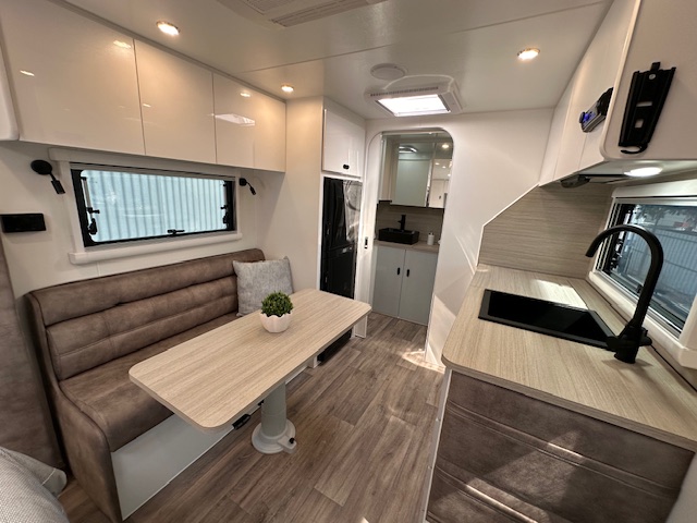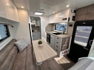 capability without sacrificing comfort and liveability. Designed to handle Australia’s tougher touring conditions, this caravan combines strong off-road engineering with a smart, functional interior that feels like a true home away from home.