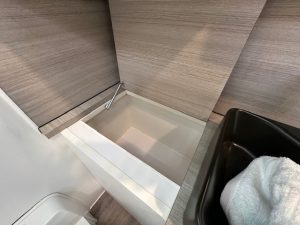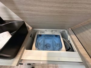 The front door layout offers a practical and welcoming entry point straight into the main living space, creating a natural flow throughout the van. This configuration maximises usable interior space while providing easy access when setting up camp. The layout feels open and well balanced, with thoughtfully positioned furniture that enhances both comfort and functionality.