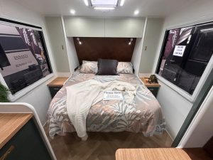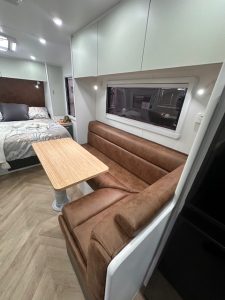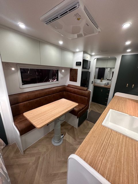 Externally, features such as a roll-out awning, picnic table, reversing camera, tunnel boot storage and annex lighting make setting up camp simple and enjoyable. Composite side walls and double-glazed windows contribute to insulation and long-term strength, reinforcing Highclere’s commitment to quality Australian manufacturing.