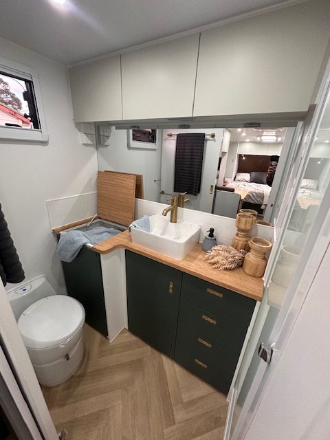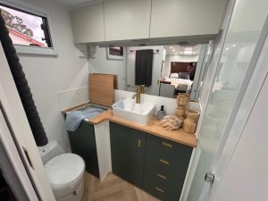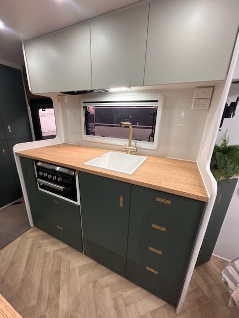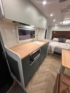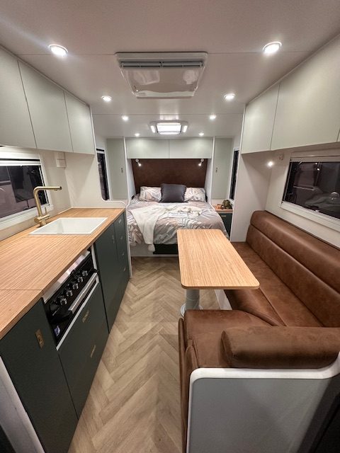 Built on a strong 6” chassis with 2” raiser and Torflex suspension, the 18’8 Little Cote offers reliable and smooth towing. Galvanised tank protection, 16” alloy wheels, electric brakes and an extended A-frame enhance durability and practicality. With twin water tanks, grey water tank, solar support, Redarc battery management and AGM battery setup, this caravan is well suited for both caravan parks and extended stays off-grid.