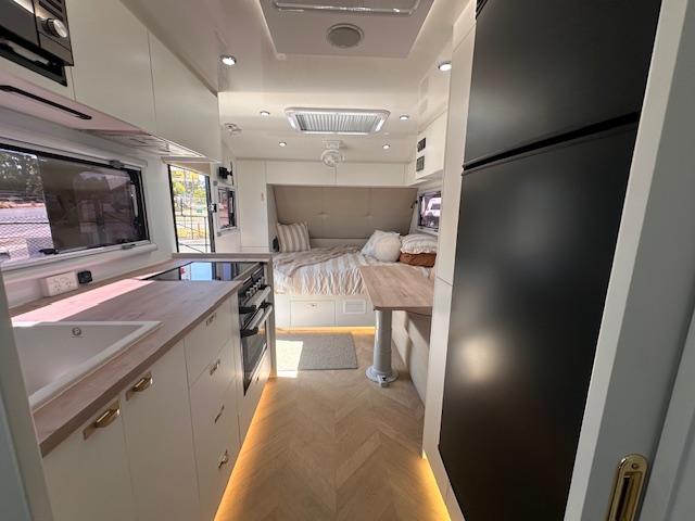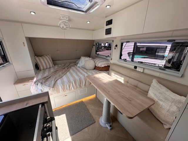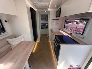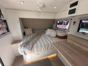 From the moment you step inside, the Atlas makes an impression with its sleek interior, premium textures, and carefully considered layout that maximises both space and liveability. Clean lines, modern colour palettes, and high-end fittings create a calming environment that feels less like a caravan and more like a boutique apartment on wheels.