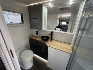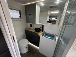 Inside, the Ironbark Slideout showcases contemporary furnishings, generous storage, and a seamlessly integrated slideout lounge or bed area that expands the living zone at the touch of a button. High-end appliances, LED lighting, and full bathroom facilities ensure comfort during extended stays, while its off-grid capabilities—solar, battery power, quality water storage, and efficient electrical systems—support long-term travel wherever the adventure leads.