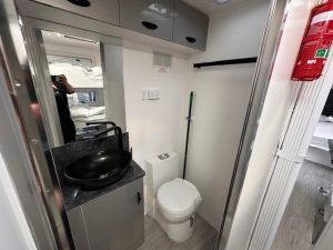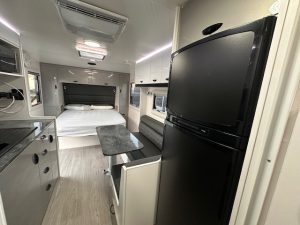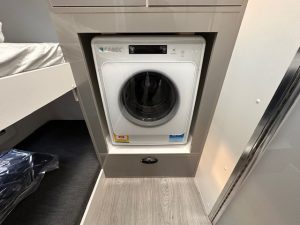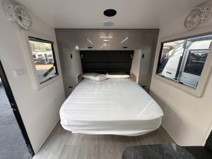 Inside, the highly desirable layout features a comfortable island bed at the front, giving parents their own private retreat with easy access from both sides and excellent surrounding storage. It’s the perfect place to unwind after a day on the road while still enjoying the space typically found in larger caravans.