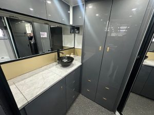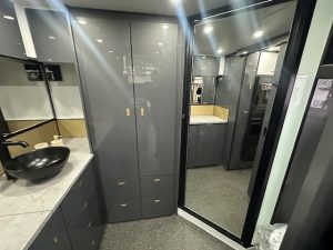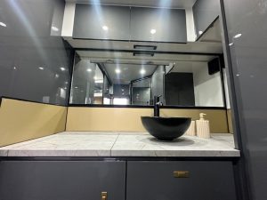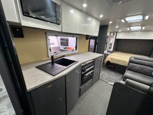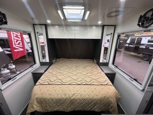 The external of this caravan is set to take you off-road and off-grid with its 3.5T coil suspension and DO35 coupling. On board 2 x 150AH lithium batteries, 3 x 200W solar panels, Enerdrive 2600W inverter. An ARL dust reduction system is installed to provide you peace of mind travelling down the dust roads.